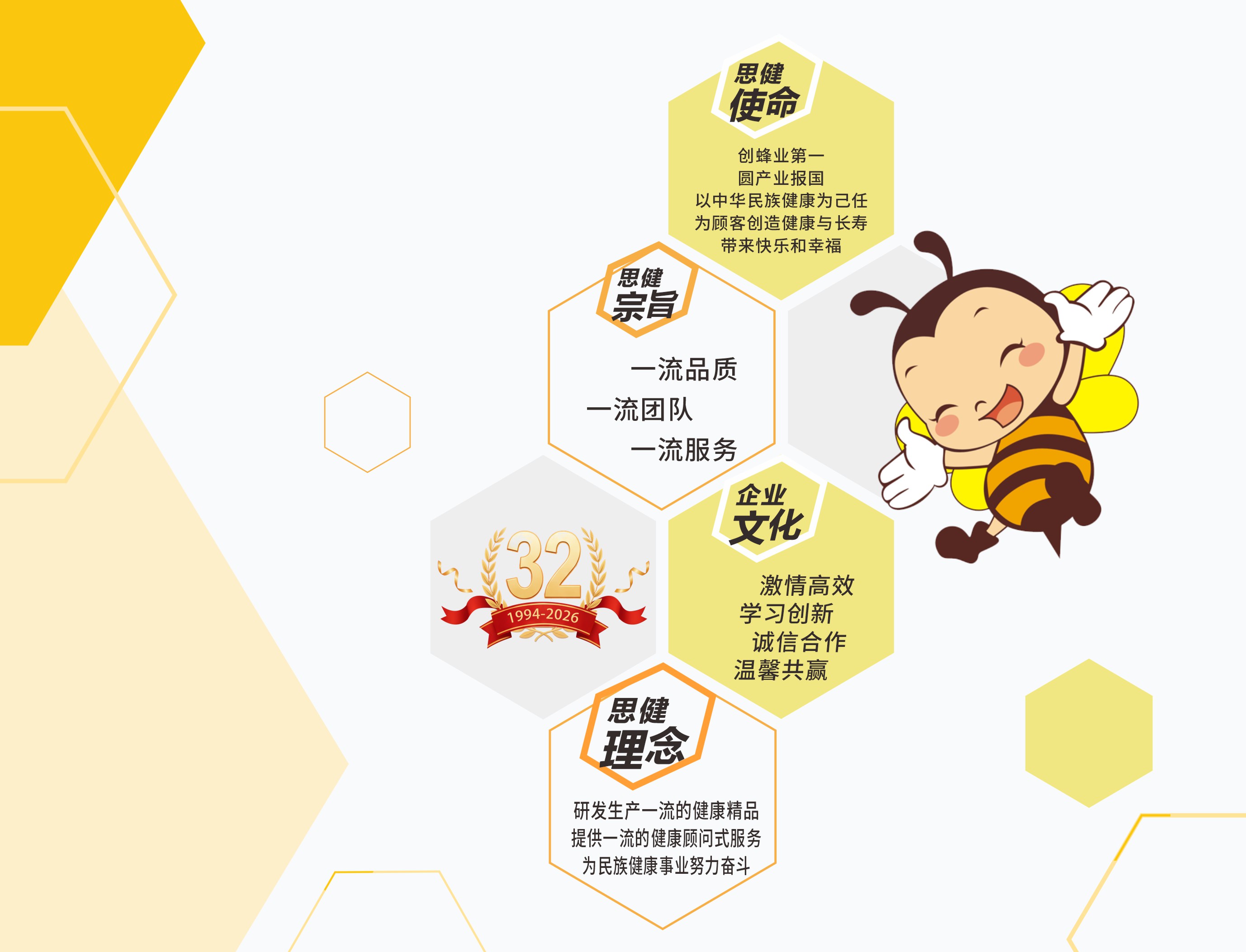 創(chuàng)蜂業(yè)第一,圓產(chǎn)業(yè)報(bào)國(guó),以中華民族健康為己任,為顧客創(chuàng)造健康與長(zhǎng)壽帶來快樂和幸福!